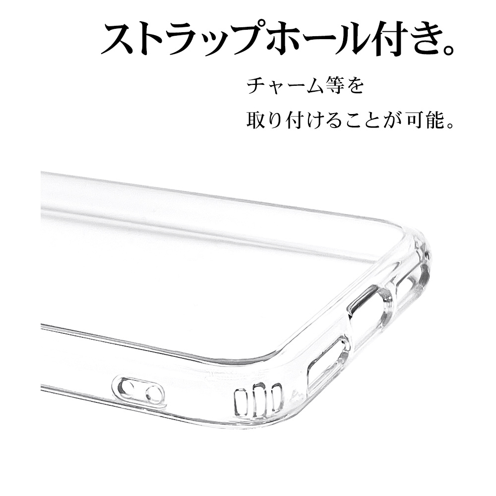 ケースを装着したままカメラ機能や充電コネクターの接続、タッチパネル操作が可能です。 また各種ボタンの操作も使用可能です。チャーム等を取り付けることが可能な「ストラップホール」付き。