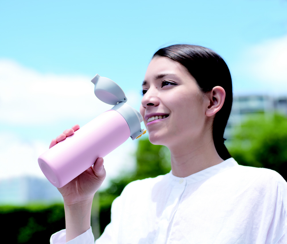 片手で簡単に開閉できるワンタッチオープンと、安全ロック機構付きのステンレス製マグボトルです。