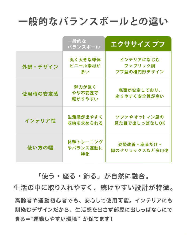 座って揺れるだけ!おうちで手軽に運動習慣。ドーナツ型のバランスボールで安定しやすい&インテリアに馴染む『エクササイズ・プフ』。