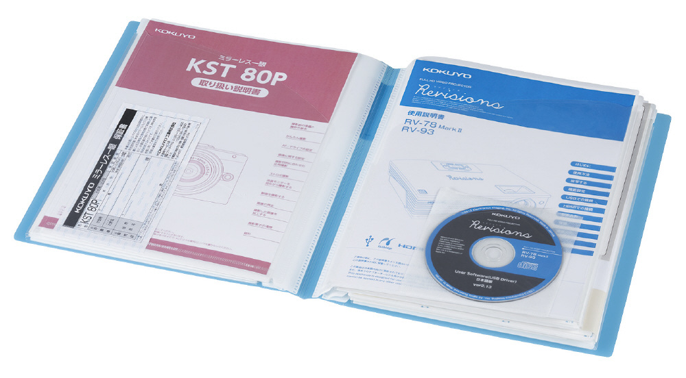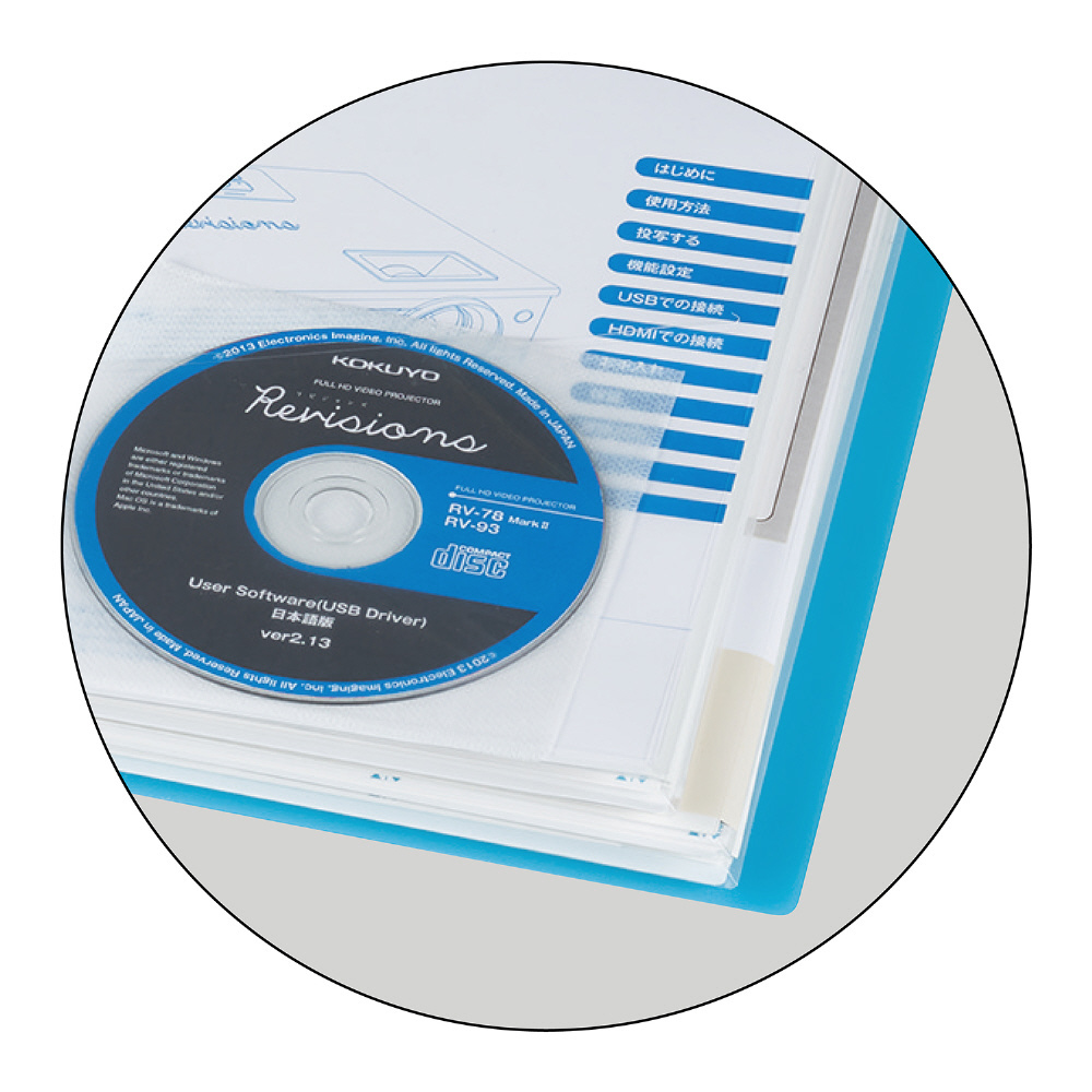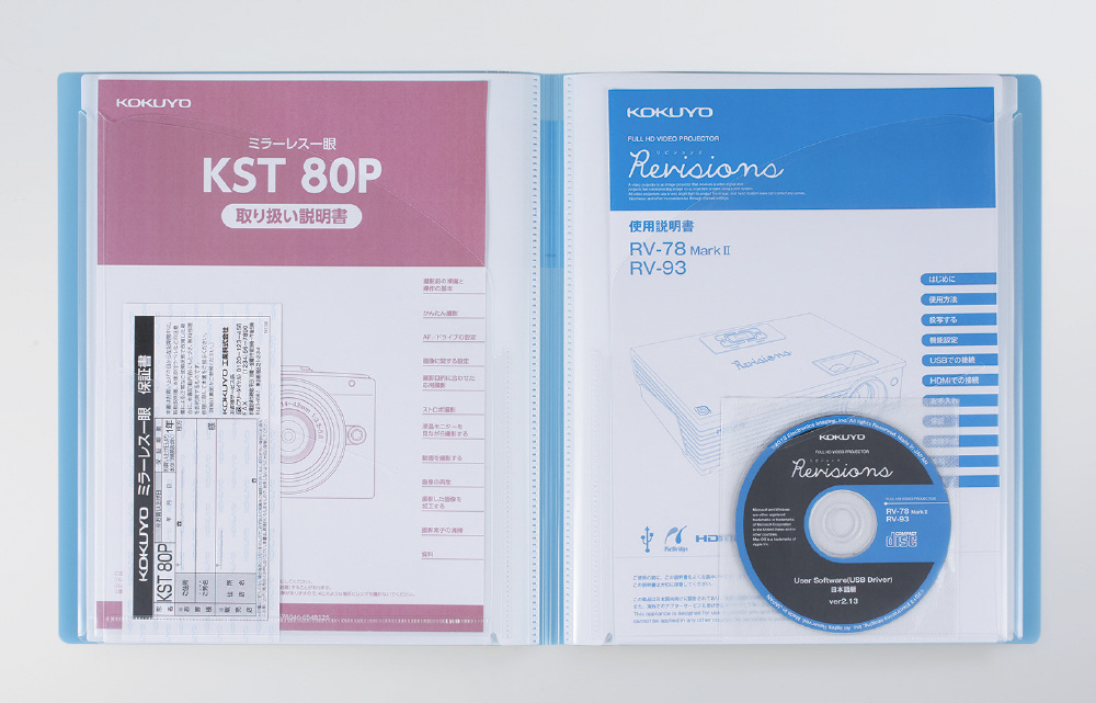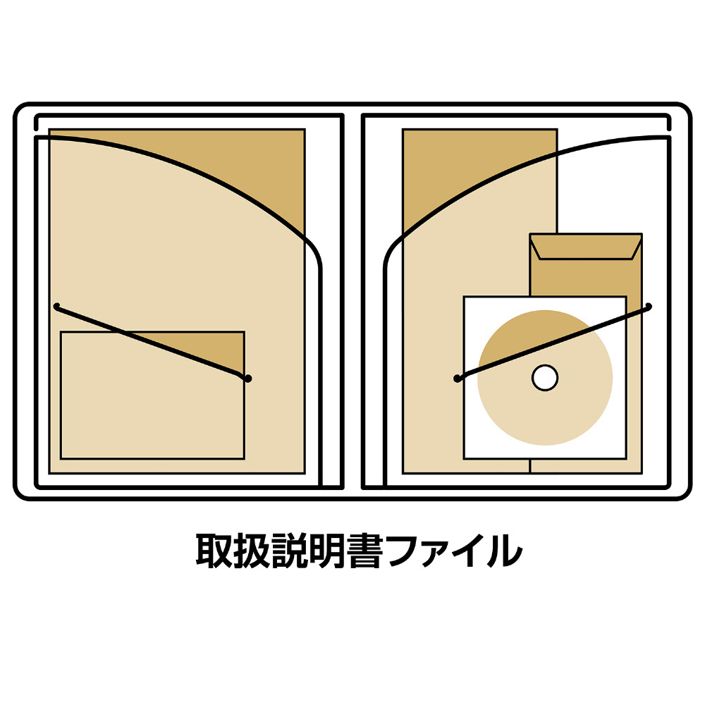 ・取扱説明書を入れるメインのA4ポケットに加え、スリットポケットにより、取扱説明書と付属書類(保証書、CDなど)をまとめて整理ができます。