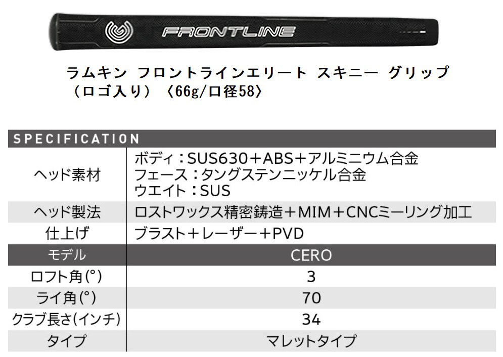 グリップ ラムキン フロントラインエリート スキニー グリップ (ロゴ入り)66g/口径58