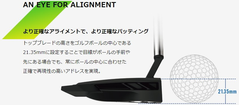オフセンターヒットでの直進性が向上し、まっすぐなパッティングを実現