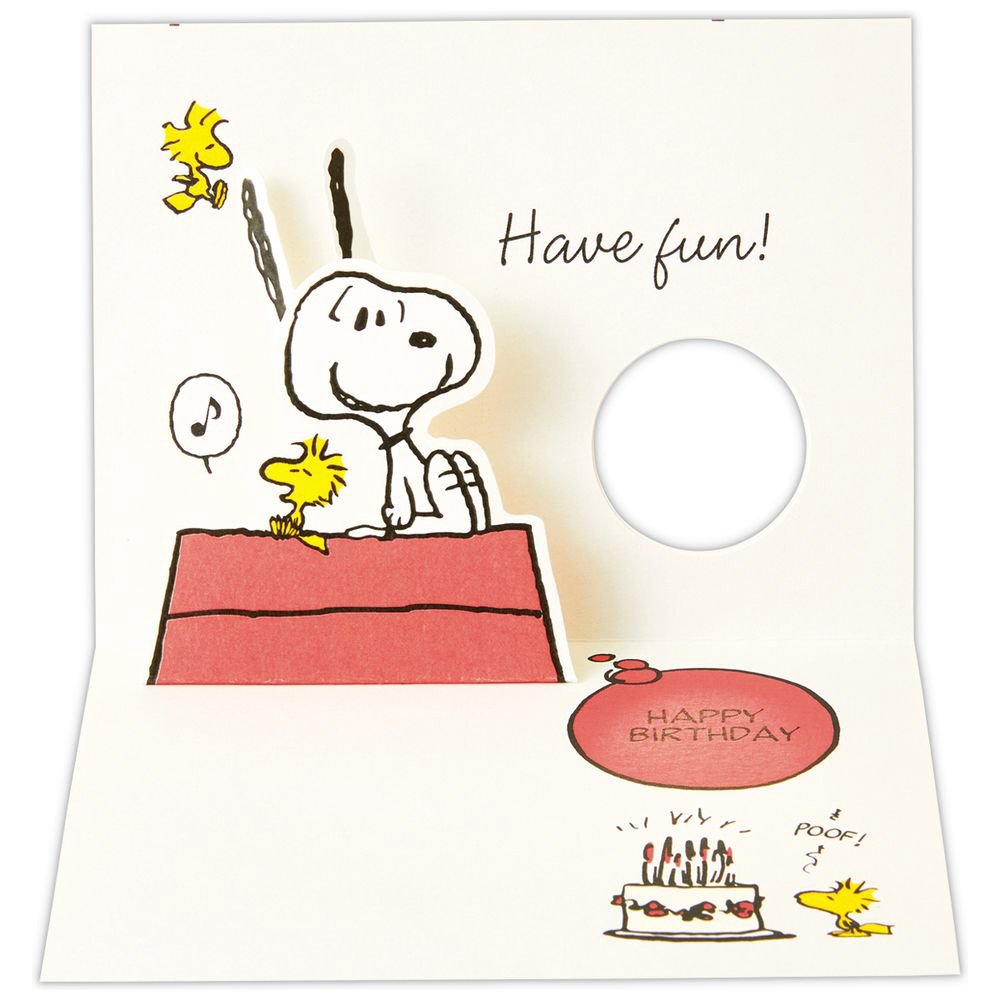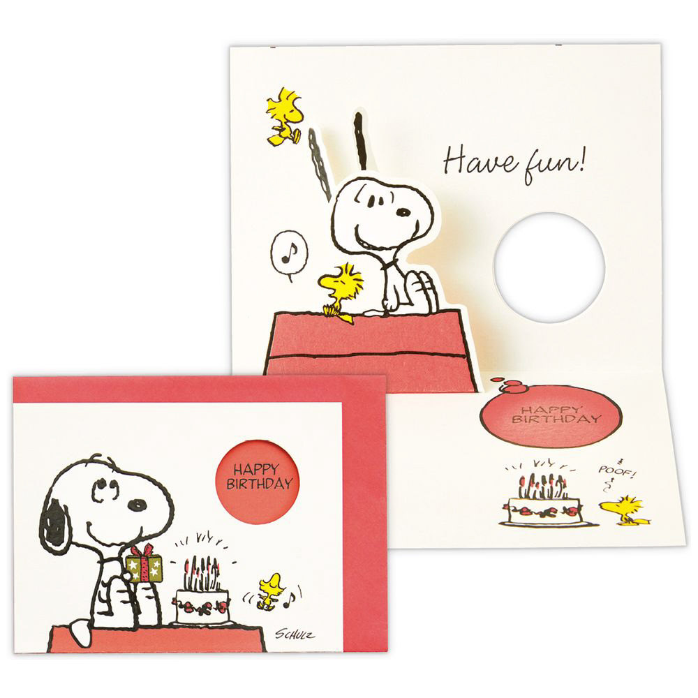 カードを開くとスヌーピーの耳がピン!と立ち上がる愉快なバースデーカード