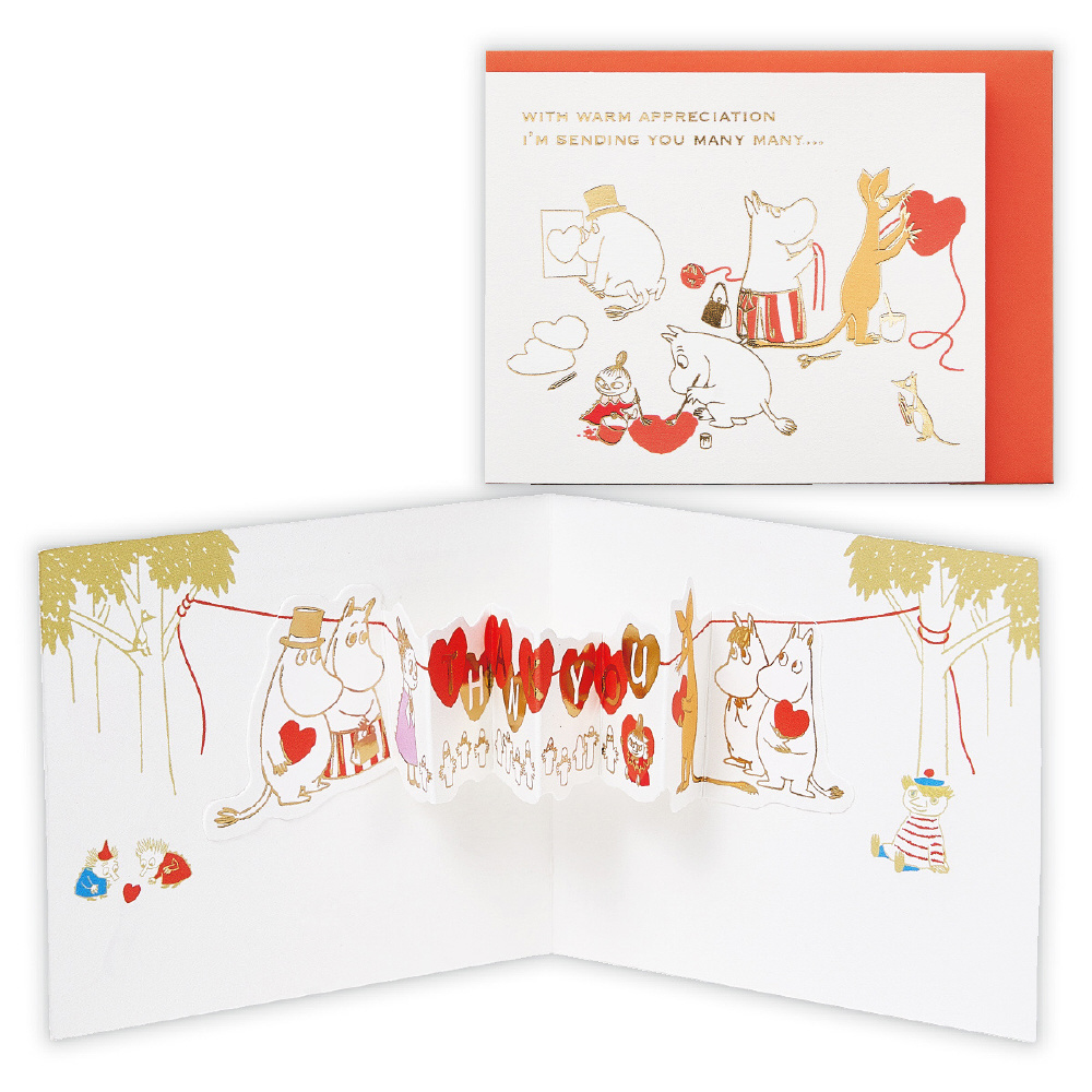 赤いハートが印象的なラブリーなムーミンのサンキューカード