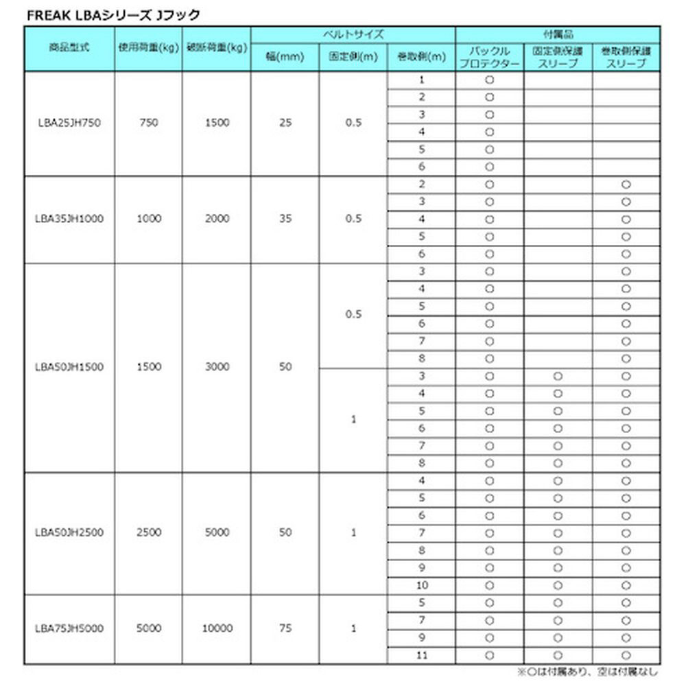 ・安全係数: 2(最大使用荷重×2=破断荷重)