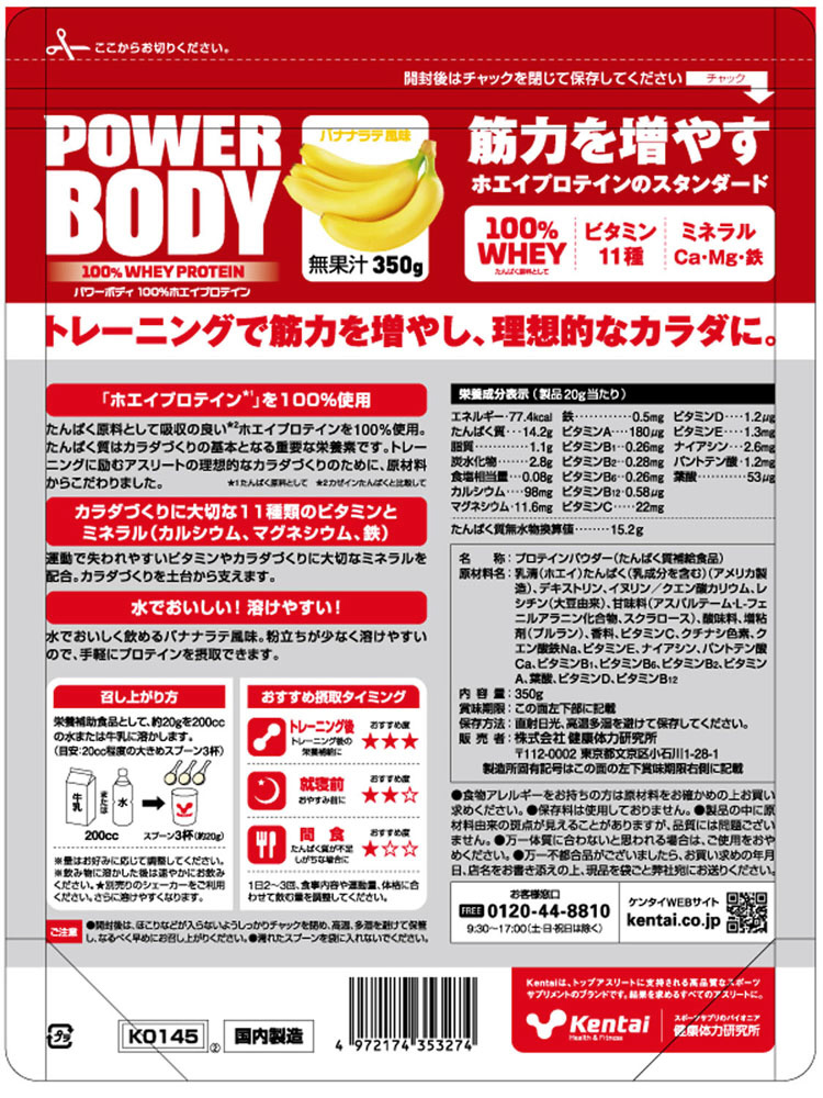 【軽減税商品】パワーボディ 100%ホエイプロテイン バナナラテ風味 350g K0145 バナナラテ風味 K0145