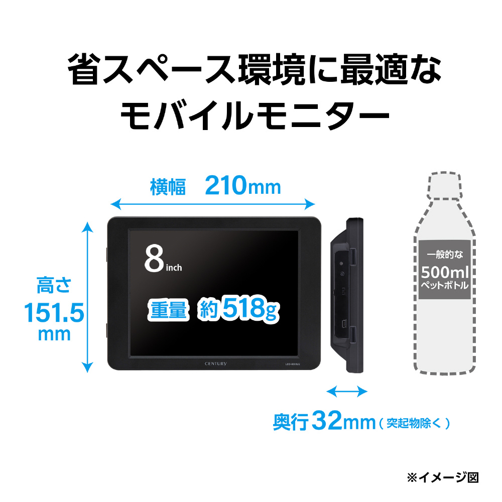 ■省スペース環境に最適な8インチUSB接続モニター