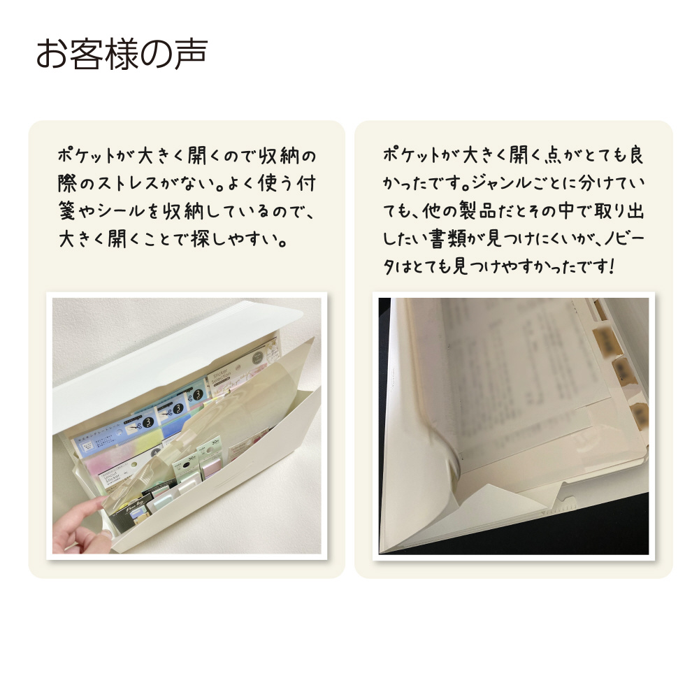 ●開きたいポケットのみを大きく開くことができる構造で、収容した書類が出し入れしやすく探しやすいです。