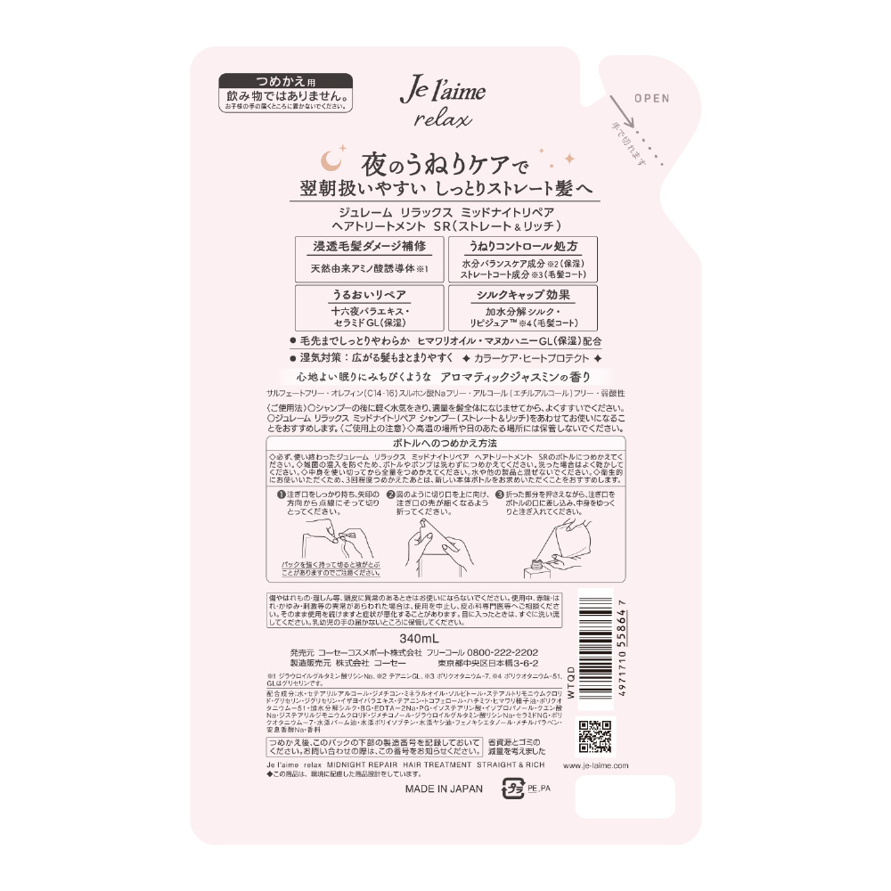 Je l’aime(ジュレーム)リラックス ミッドナイトリペア ヘアトリートメント つめかえ用(ストレート&リッチ)340mL