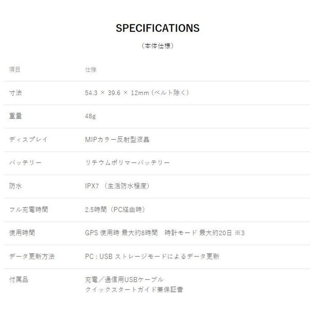 仕様2 ・連続使用時間:GPS 使用時最大 8 時間(時計モード最大 20 日)