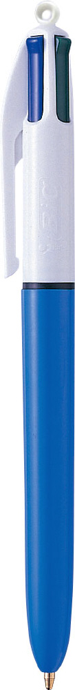 白とブルーのコントラストがかわいい4色の油性ボールペン。