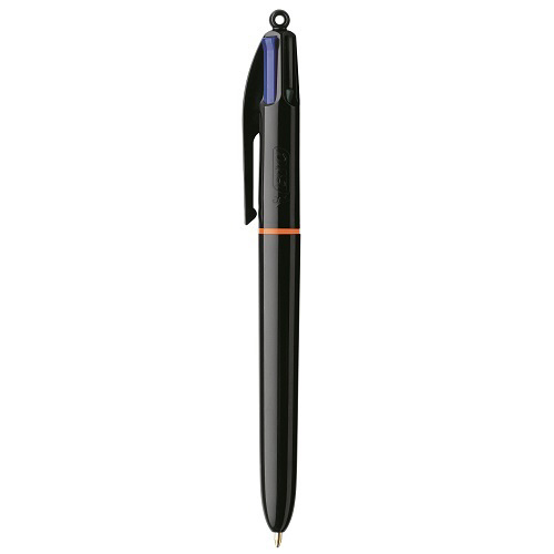フルブラックボディとオレンジのトリムがおしゃれな最新4色ボールペン。