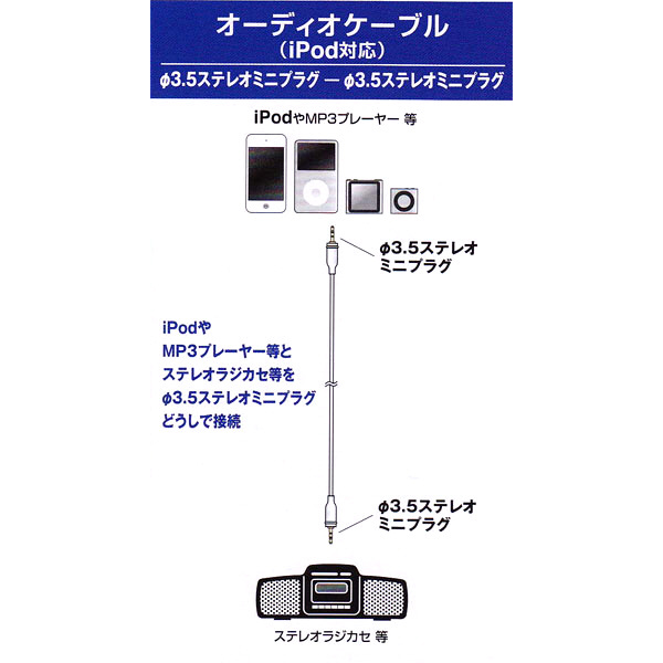 iPodやMP3プレーヤーとステレオラジカセをφ3.5ステレオミニプラグで接続する場合などに使います。