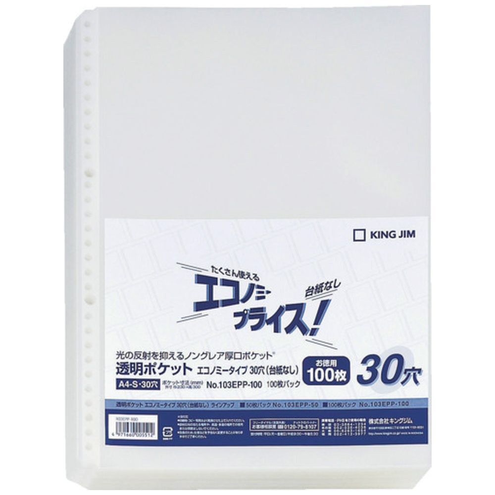 キングジム 透明ポケットエコノミ−30穴台紙なし (100枚入) 103EPP-100