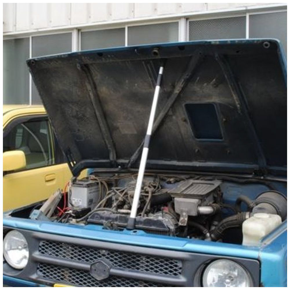 伸ばしてひねるだけで簡単に固定できる便利なボンネットホルダーです。