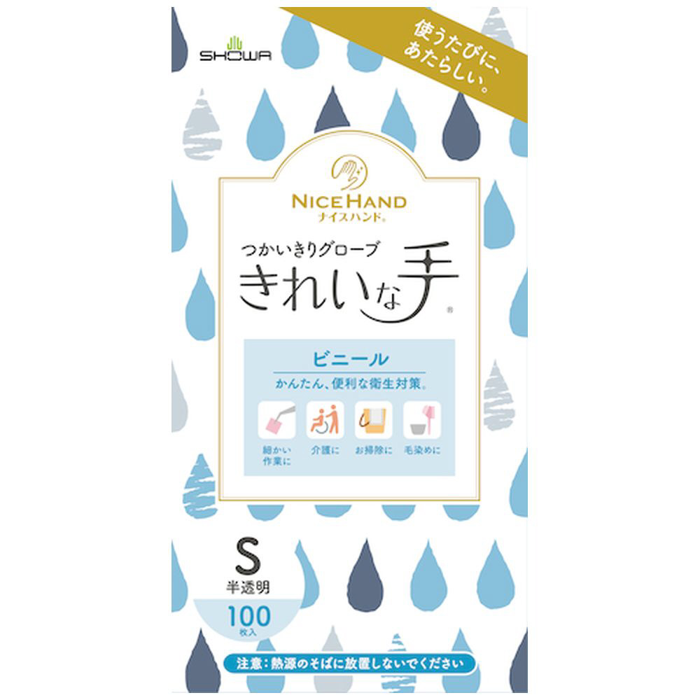 ショーワ ビニール使い捨て手袋 ナイスハンドきれいな手つかいきりグローブ ビニール 100枚入 Sサイズ NHKTTGPVC-S100P