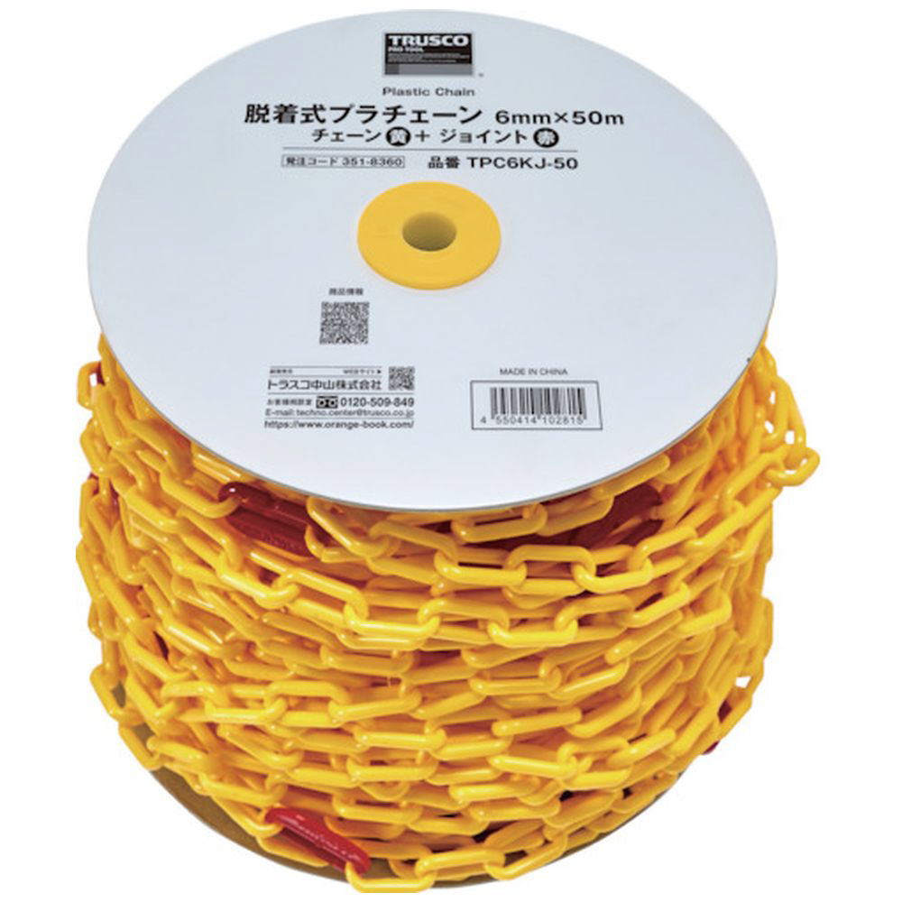 TRUSCO 脱着式プラチェーン 6MM×50M プラチェーン(黄)+プラチェーンジョイント(赤) TPC6KJ-50