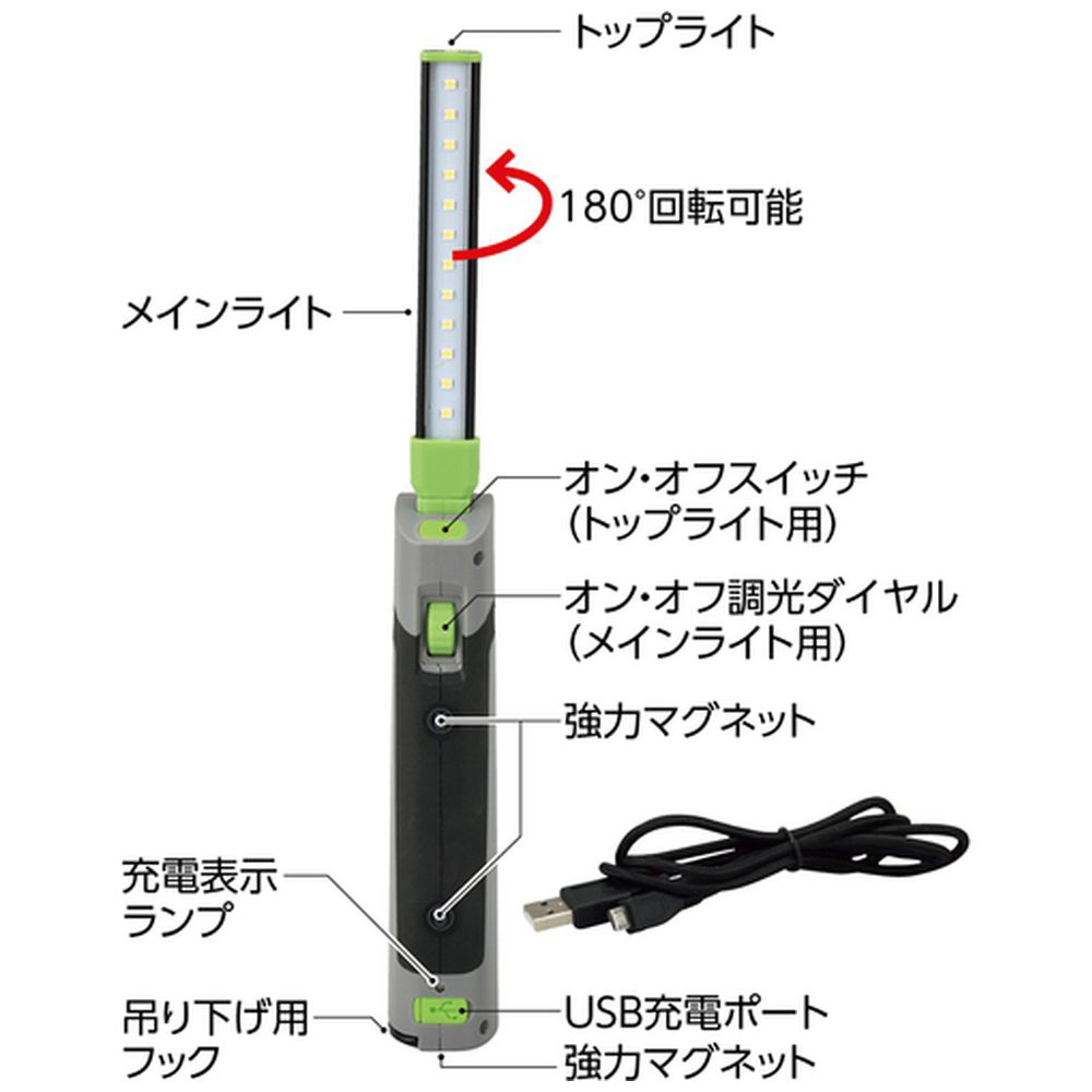 ■400lmのメインライトに加え、便利なトップライト(70lm)付です。