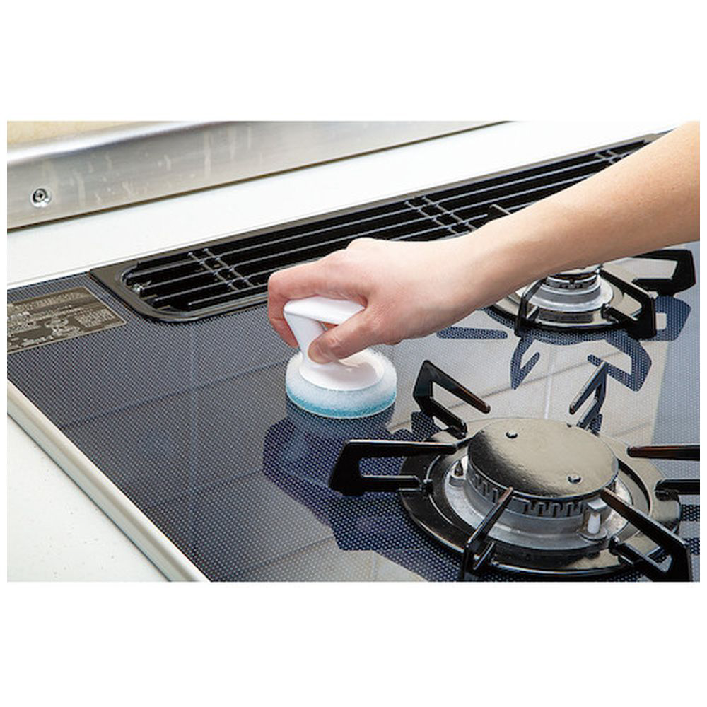 丈夫で硬いネットたわしが、ガラストップ表面のガンコな汚れを削り落とします。