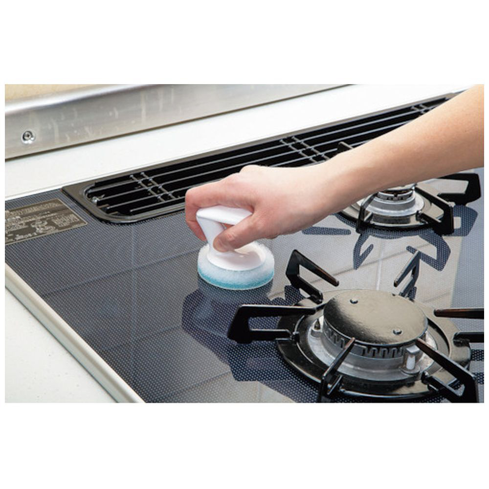 ■丈夫で硬いネットたわしが、ガラストップ表面のガンコな汚れを削り落とします。
