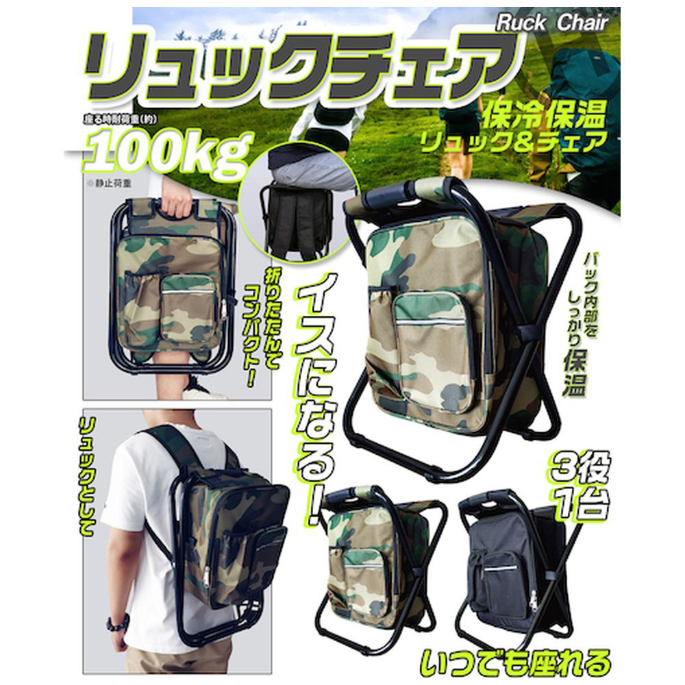 ■保冷機能が付いたリュックを背負って持ち運び、釣りやレジャー時に現地で椅子にもなる優れものです。
