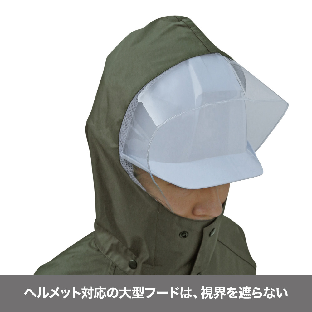 ■ヘルメット対応の大型フード付きです。
