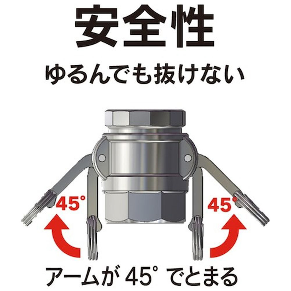 ■【安全性】 振動に強くカムアームがはずれにくい構造で、流体漏れを防止します。