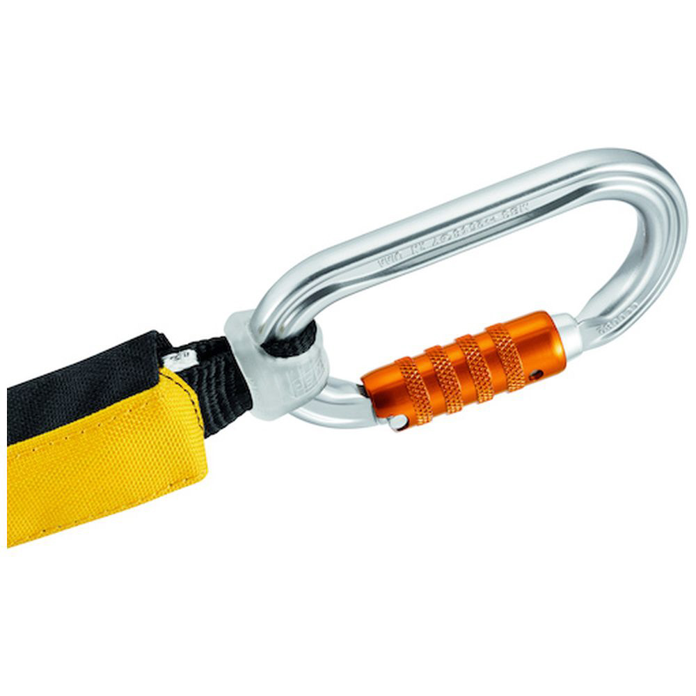 ■「ストリング」を取り付けることにより、荷重がカラビナの縦軸方向にかかるようにサポートし、また器具が反転するリスクを減少させ、カラビナと器具を一体化できます。