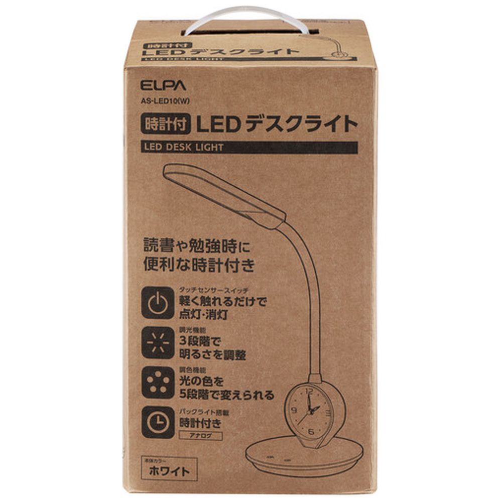ELPA LEDデスクライト 時計付 AS-LED10(W)
