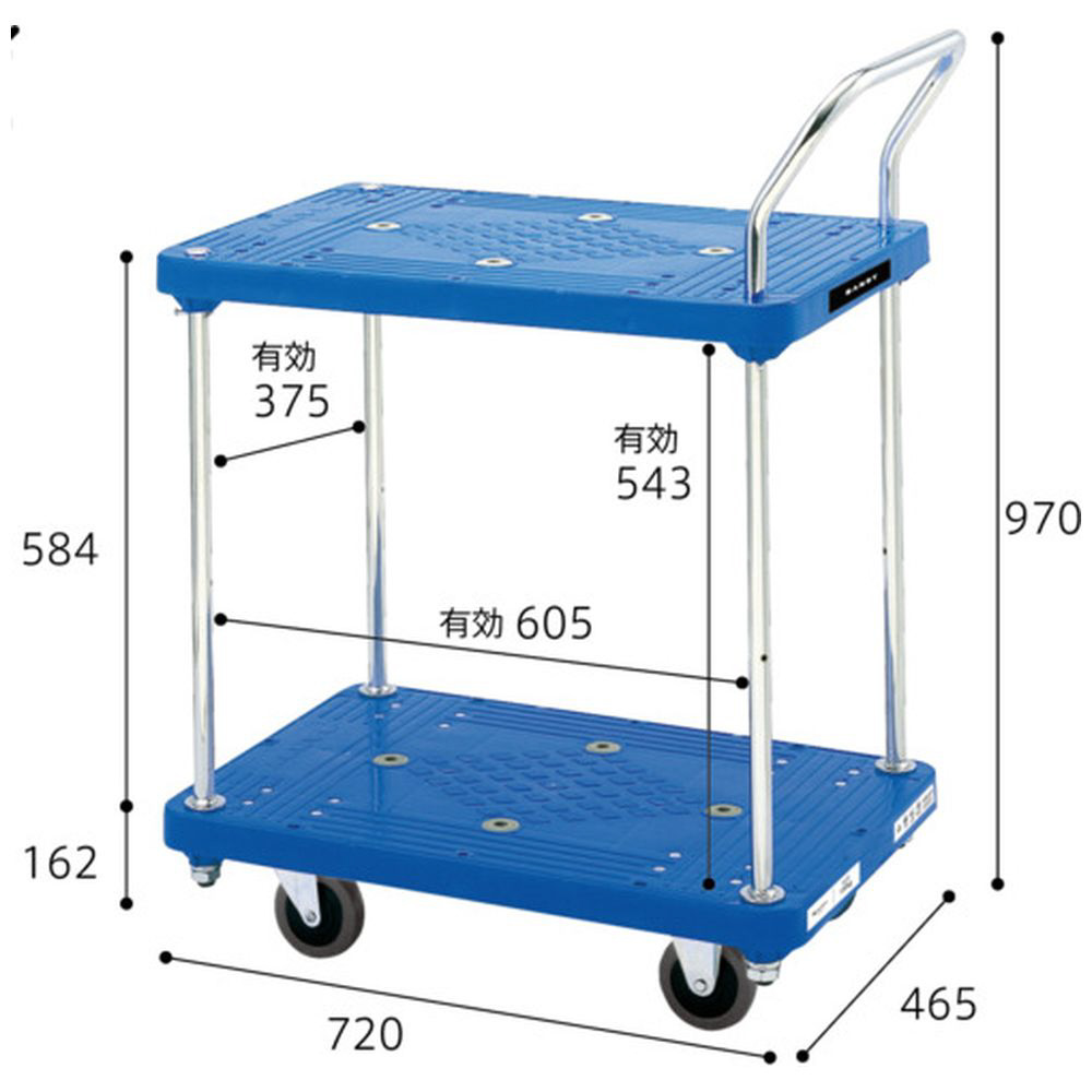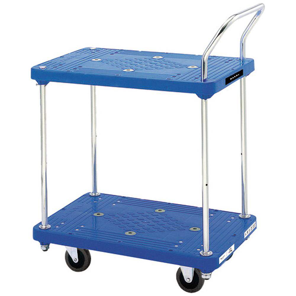 ダンディ プラスチック台車 ダンディPシリーズ タイプPL 2段テーブル片ハンドル式 標準(ノイズレスキャスター)仕様 W720×D465 PL-BT2