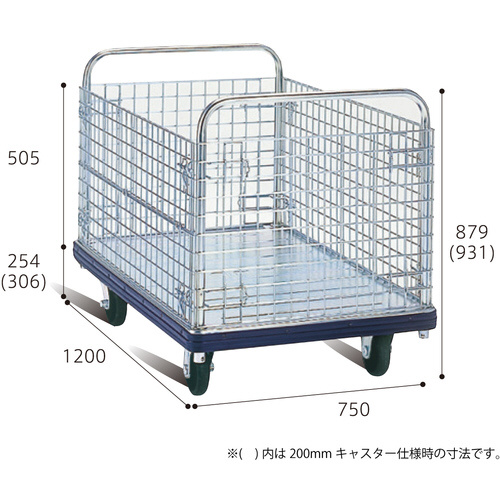 ダンディ スチール台車 ダンディDシリーズ タイプDG カゴ台車 6インチキャスター仕様 W1200×D750 DG-BW-6
