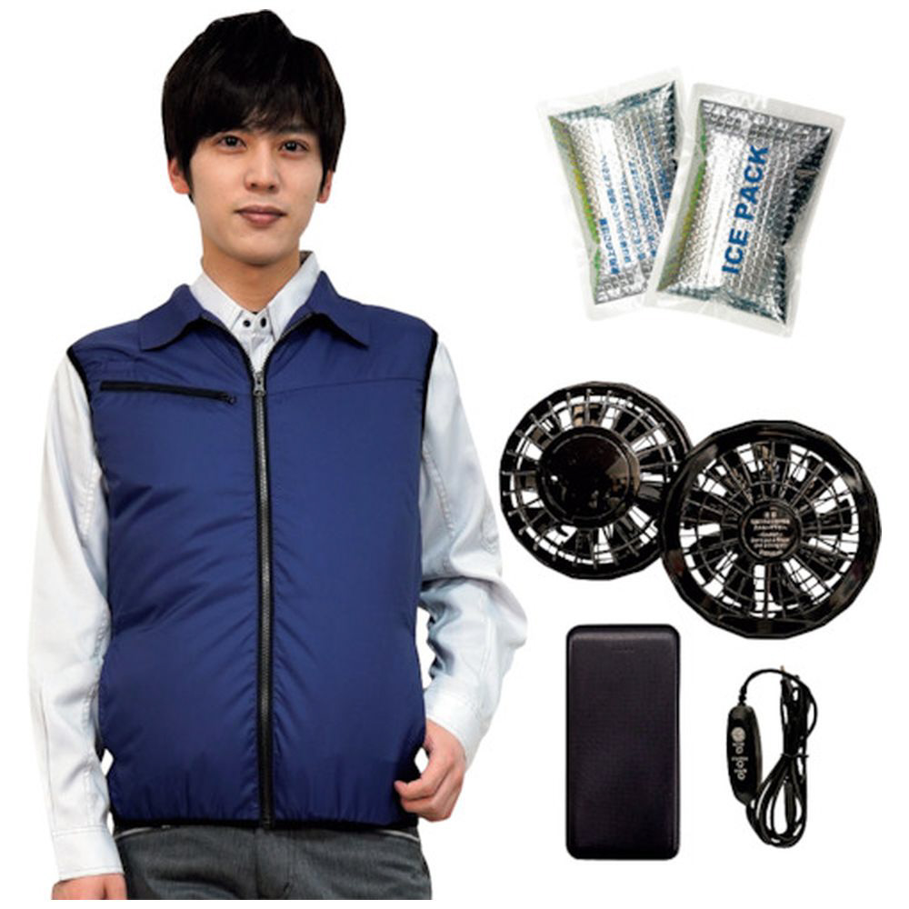 岡潮 冷感保冷剤付き、空調ベスト+モバイルバッテリー付20201 ネイビー M 20201N-M-0920
