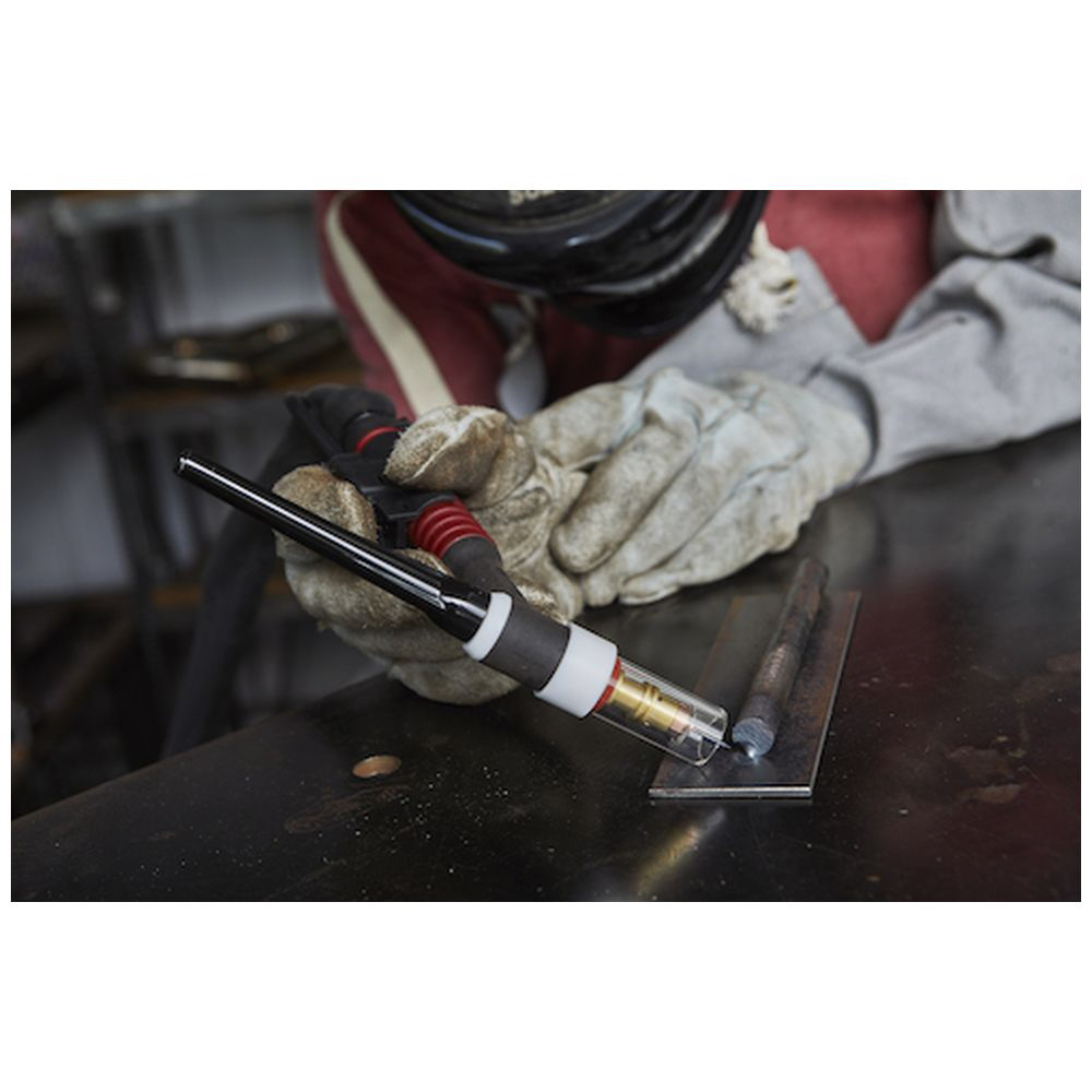 ノズルが透明になっているのでタングステン電極棒の先端及び溶接箇所の視認性が向上します。