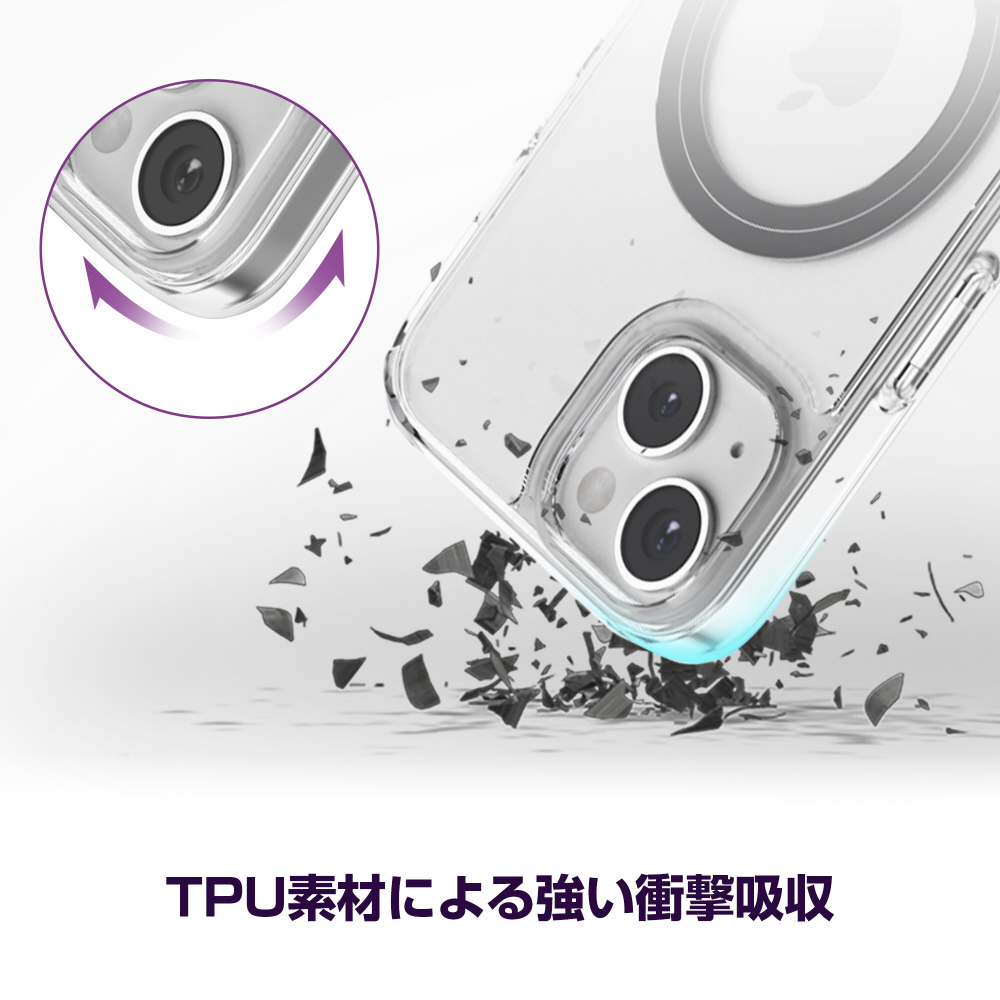 柔らく衝撃に強いTPU素材を使用。高弾性エアガードにより角から落下した場合などの強い衝撃からiPhoneを守ります。
