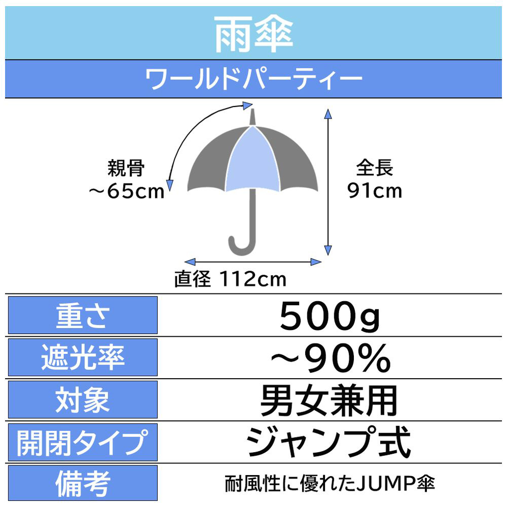 親骨の受け骨のジョイント部分にZ型の構造を採用した耐風性に優れたJUMP傘