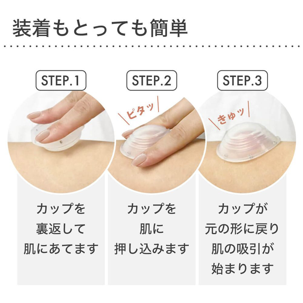 使用したい部分に当て、解脱玉を押して内部の空気を抜き、吸引します。