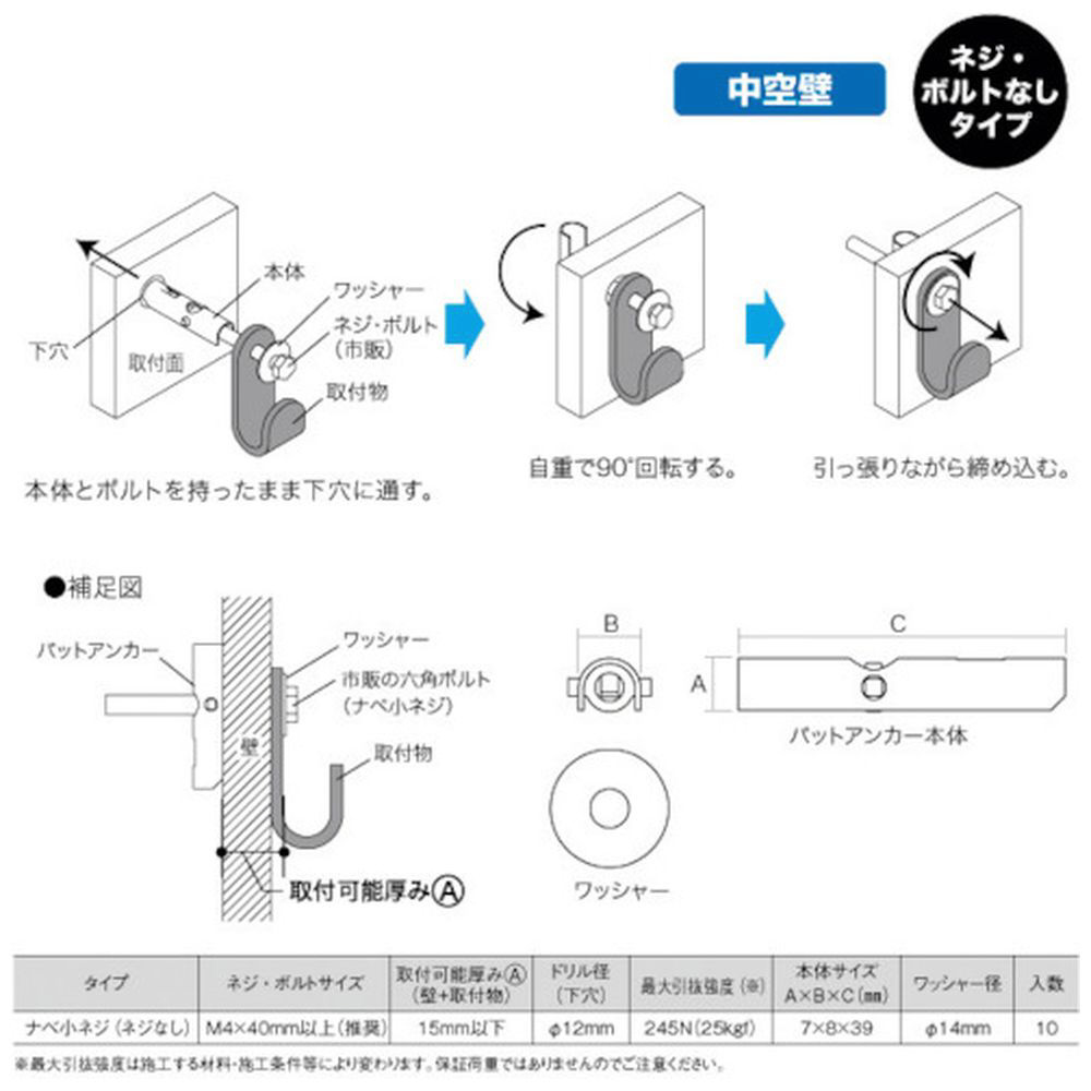 ■ネジサイズ: M4×40mm以上(推奨)下穴から水平に差し込んで、壁裏側の本体が垂直に立ち、壁面と取付物をしっかり固定することができる。