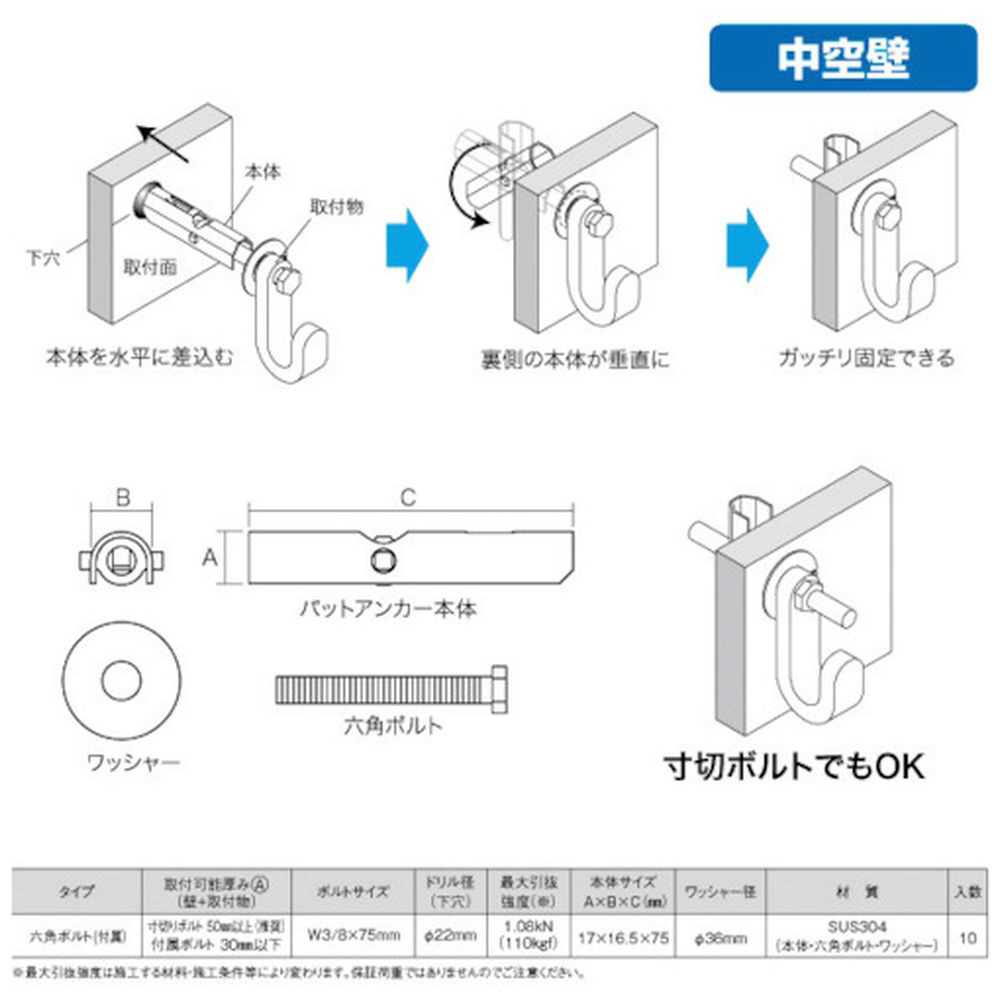 ・取付物厚さ(mm): 寸切りボルト 50以上(推奨)付属ボルト 30以下(壁+取付物)