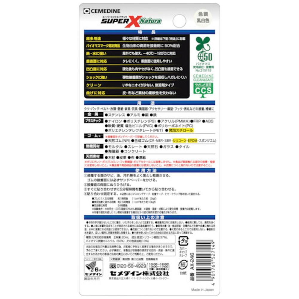 セメダイン スーパーX ナチュラ(Natura)(乳白色) P20mL(バイオマスマーク認定50%)AX−246 AX-246
