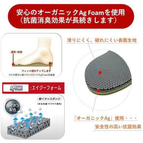 ■オーガニックAg(銀イオン)を配合、嫌な臭いを防ぎ、通気にも優れています。