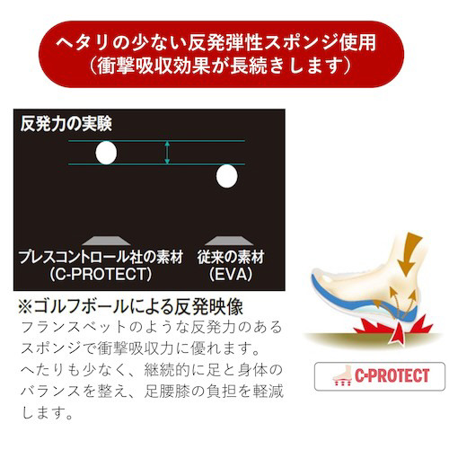 ■反発弾性スポンジは衝撃吸収効果が高く、へたりにも強いため、長期間、膝と腰へのダメージを緩和します。