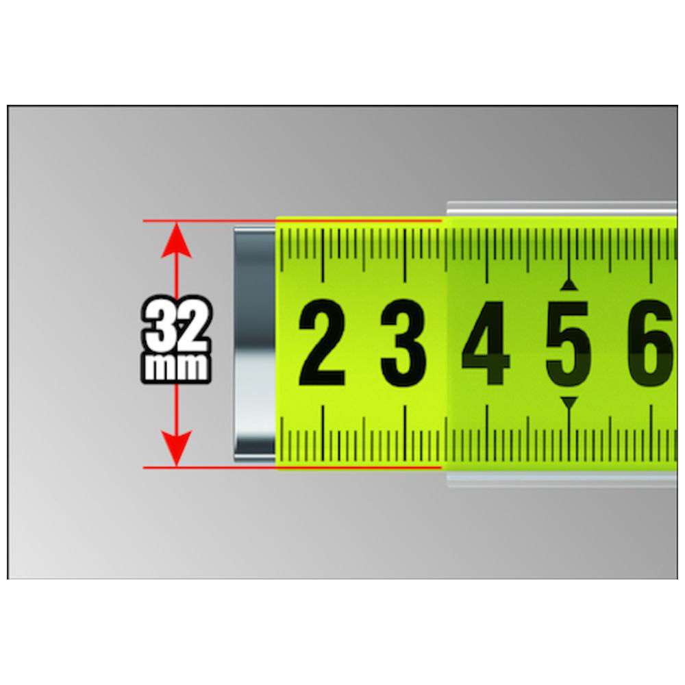 立ち3.6m、曲がりにくく、折れにくい32mm巾テープを採用しています。