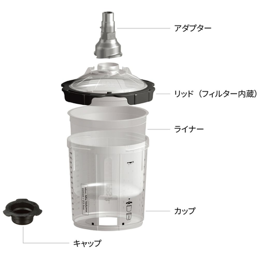 ■フィルター内蔵なので調色・フィルタリング・塗装作業まで一つのカップで行うことができます。