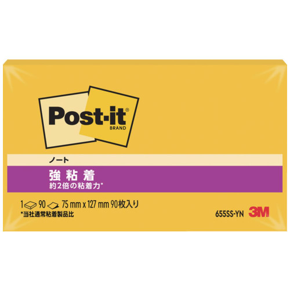 3M ポスト・イット 強粘着 75X127mm 90枚 イエロー 655SS-YN