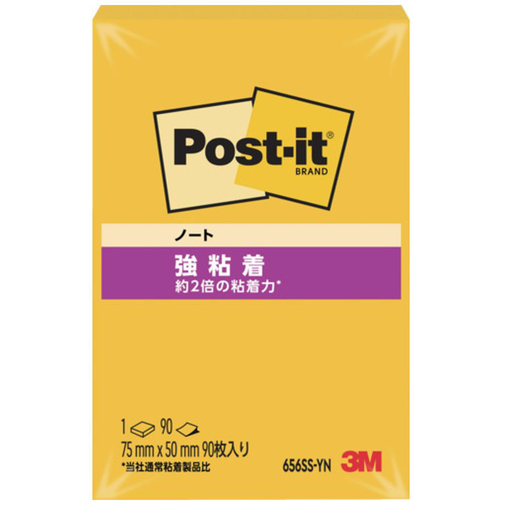 3M ポスト・イット 強粘着 75X50mm 90枚 ウルトライエロー 656SS-YN