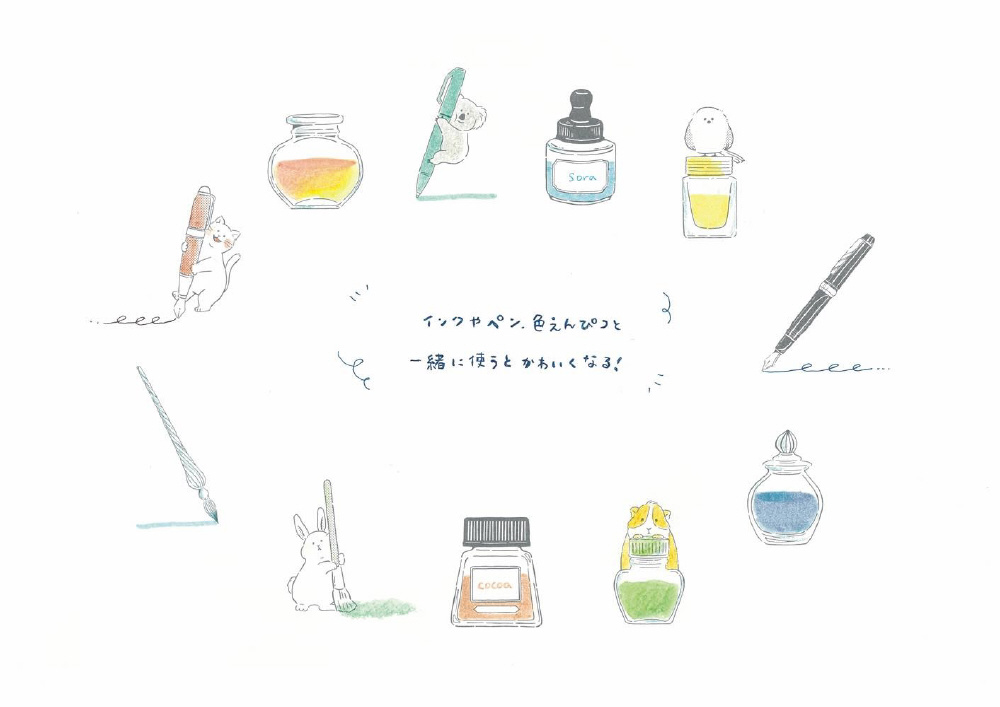 おうちにあるインクやペン、色鉛筆などかわいく使える♪
