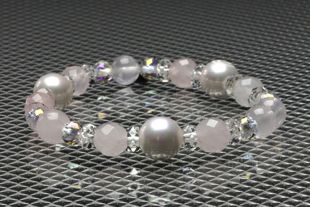 バランスeクリスタル400pw+天然石(ローズクォーツ・クリスタル)で出来たブレスレットです。
