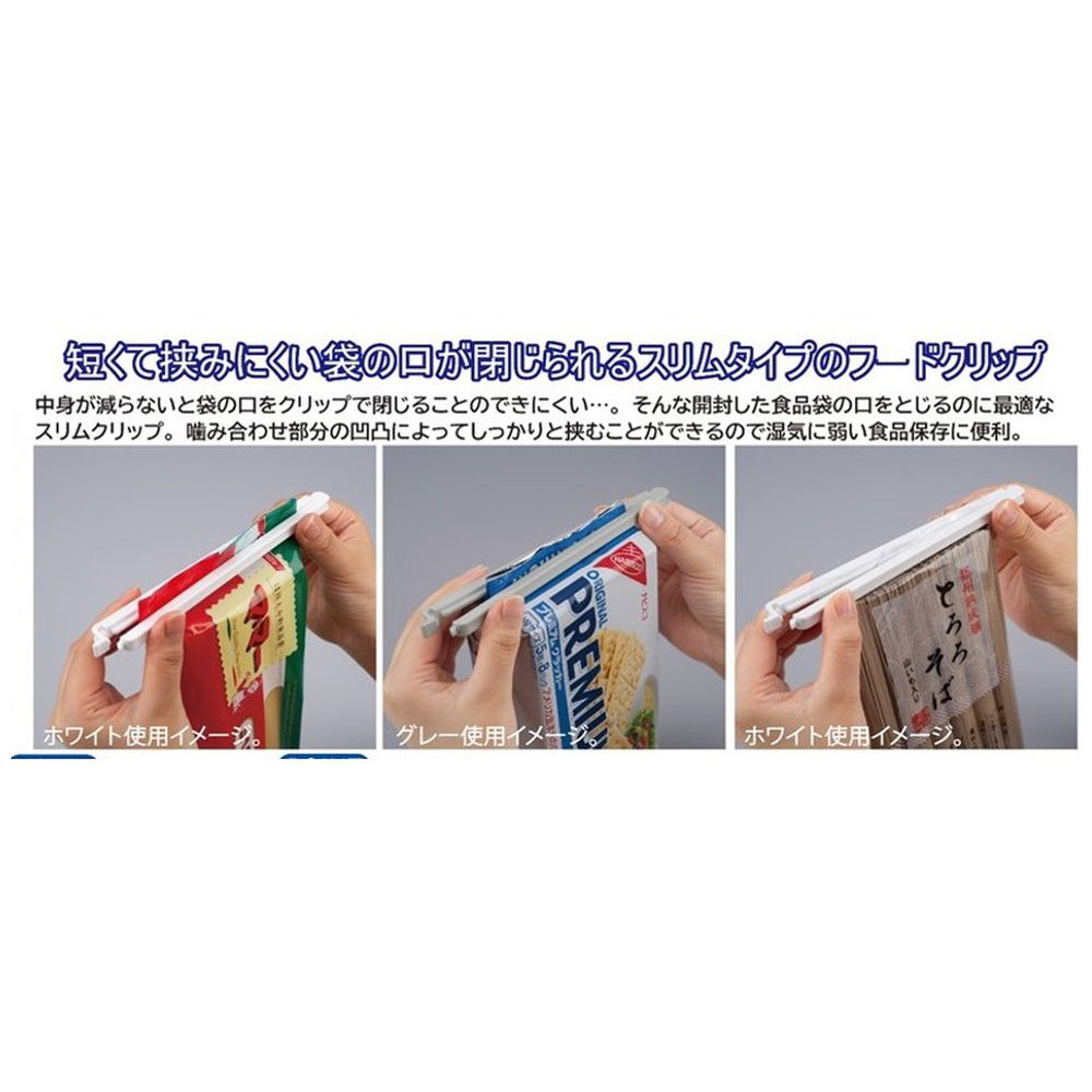 ■短くて挟みにくい袋の口が閉じられるスリムタイプのフードクリップ。