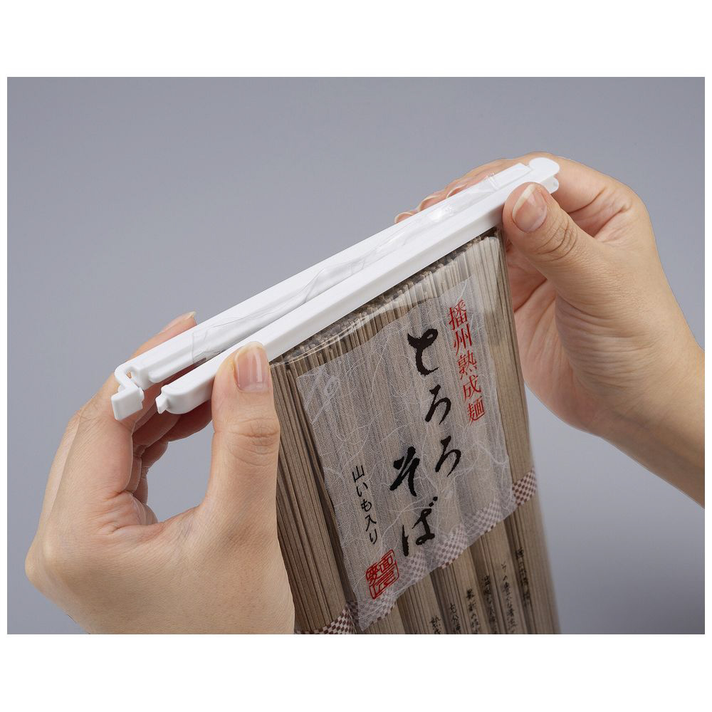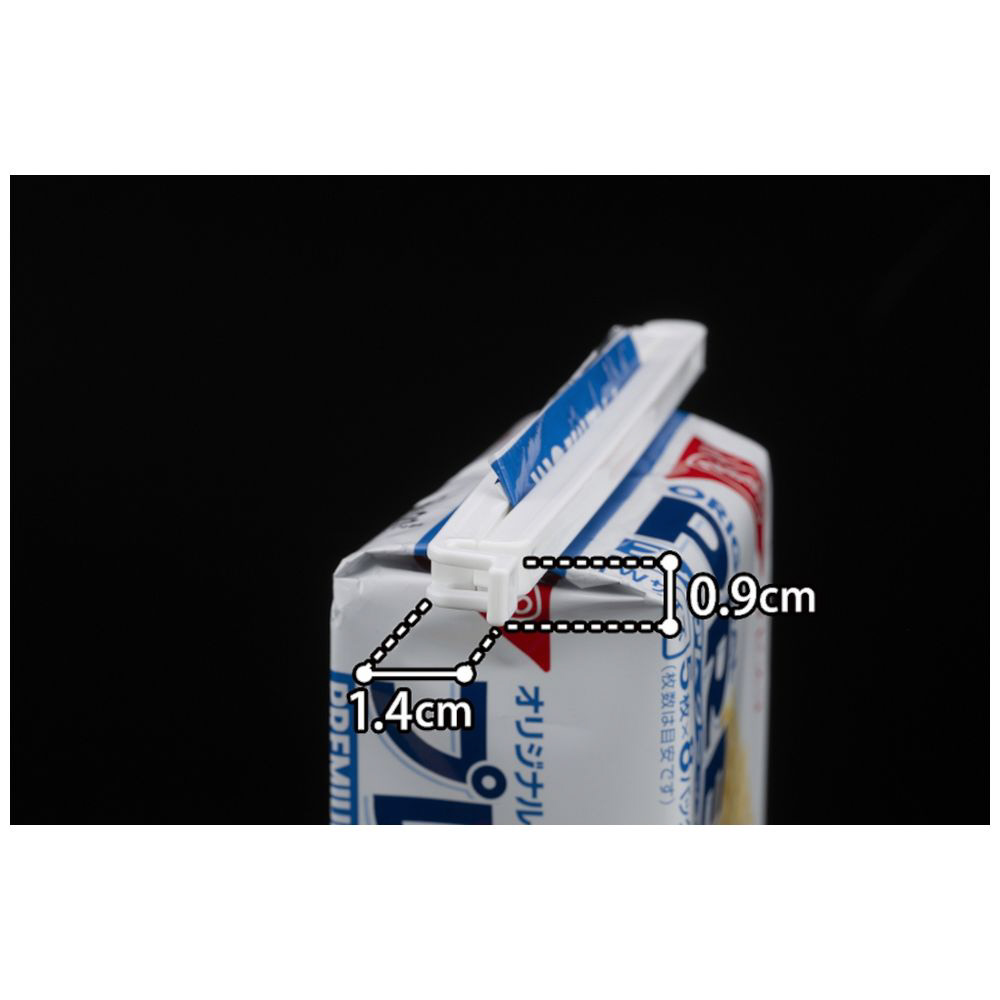 短くて挟みにくい袋の口が閉じられるスリムタイプのフードクリップ。