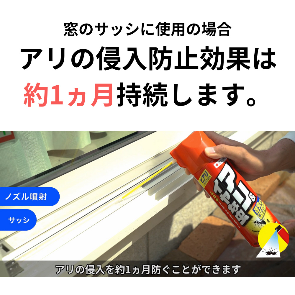 アリの侵入防止効果は約1カ月(サッシの場合)持続します。